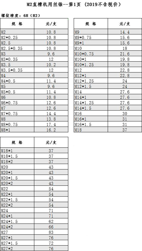 M2直槽机用丝锥