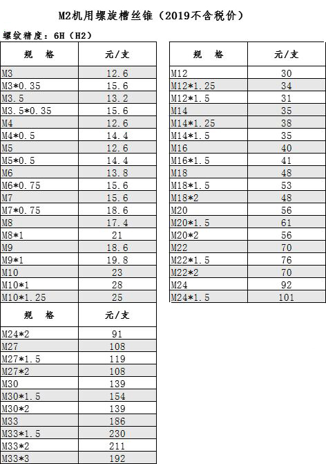M2机用螺旋槽丝锥